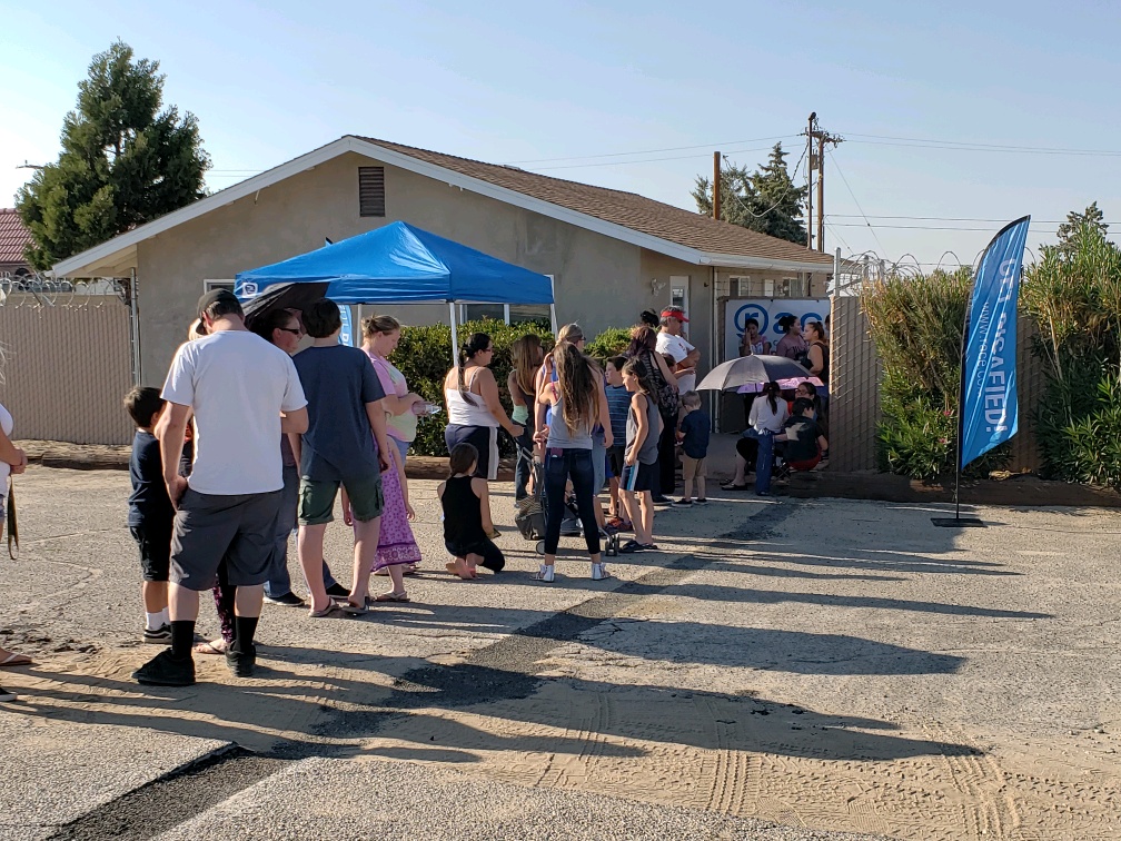 The Race team showed up bright and early to start setting up for the event. Boxes of backpacks, school supplies, and water bottles were unpacked, banners were hung and the A/C was turned on. By 5pm, residents of Phelan began to show up and formed a neat line outside the new Race field office.
